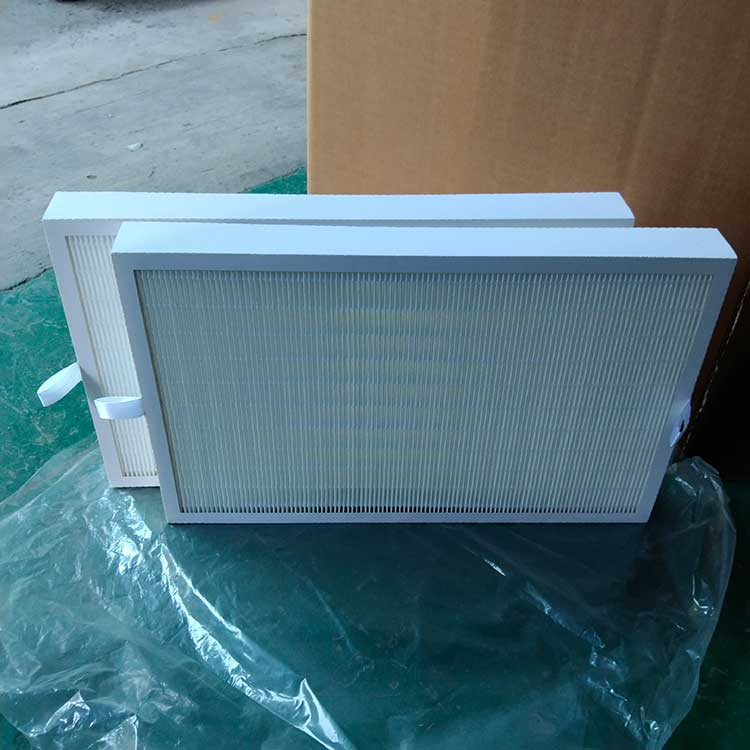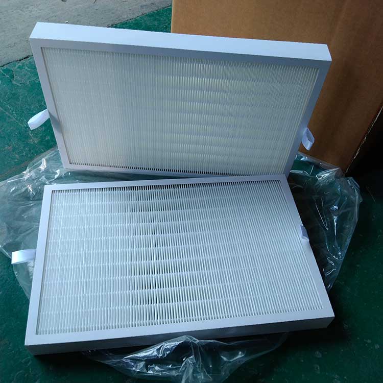 過(guò)濾材料是以折疊形式裝入高強(qiáng)度模切硬紙板內(nèi),迎風(fēng)面積增大。流入的空氣中的塵埃粒子被過(guò)濾材料有效阻擋在褶與褶之間。潔凈空氣從另一面均勻流出,因此氣流通過(guò)過(guò)濾器是平緩和均勻的。視過(guò)濾材料不同,它所阻擋的粒徑從0.5μm到5μm而不同,過(guò)濾效率也不同 。
